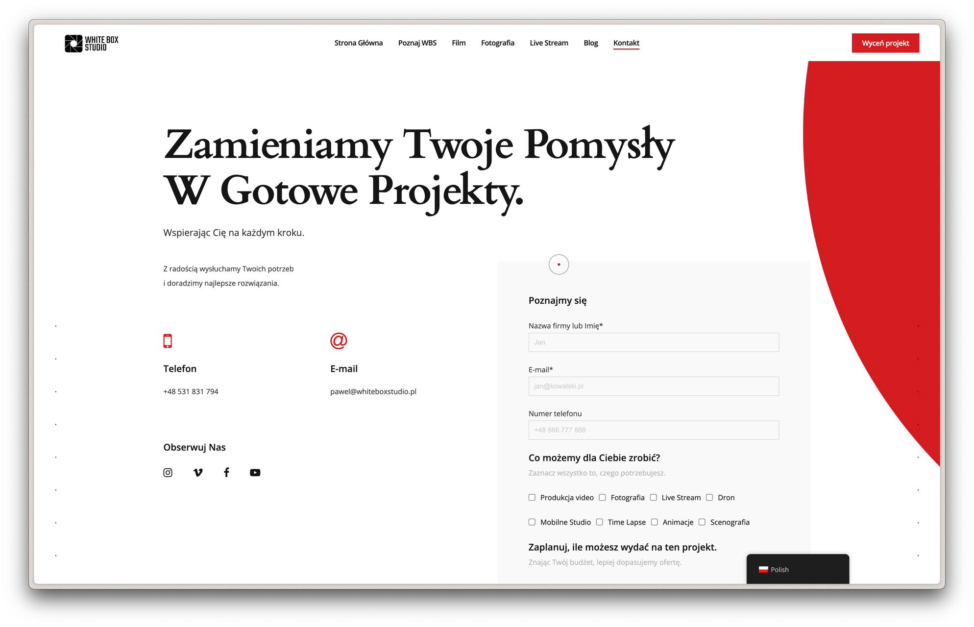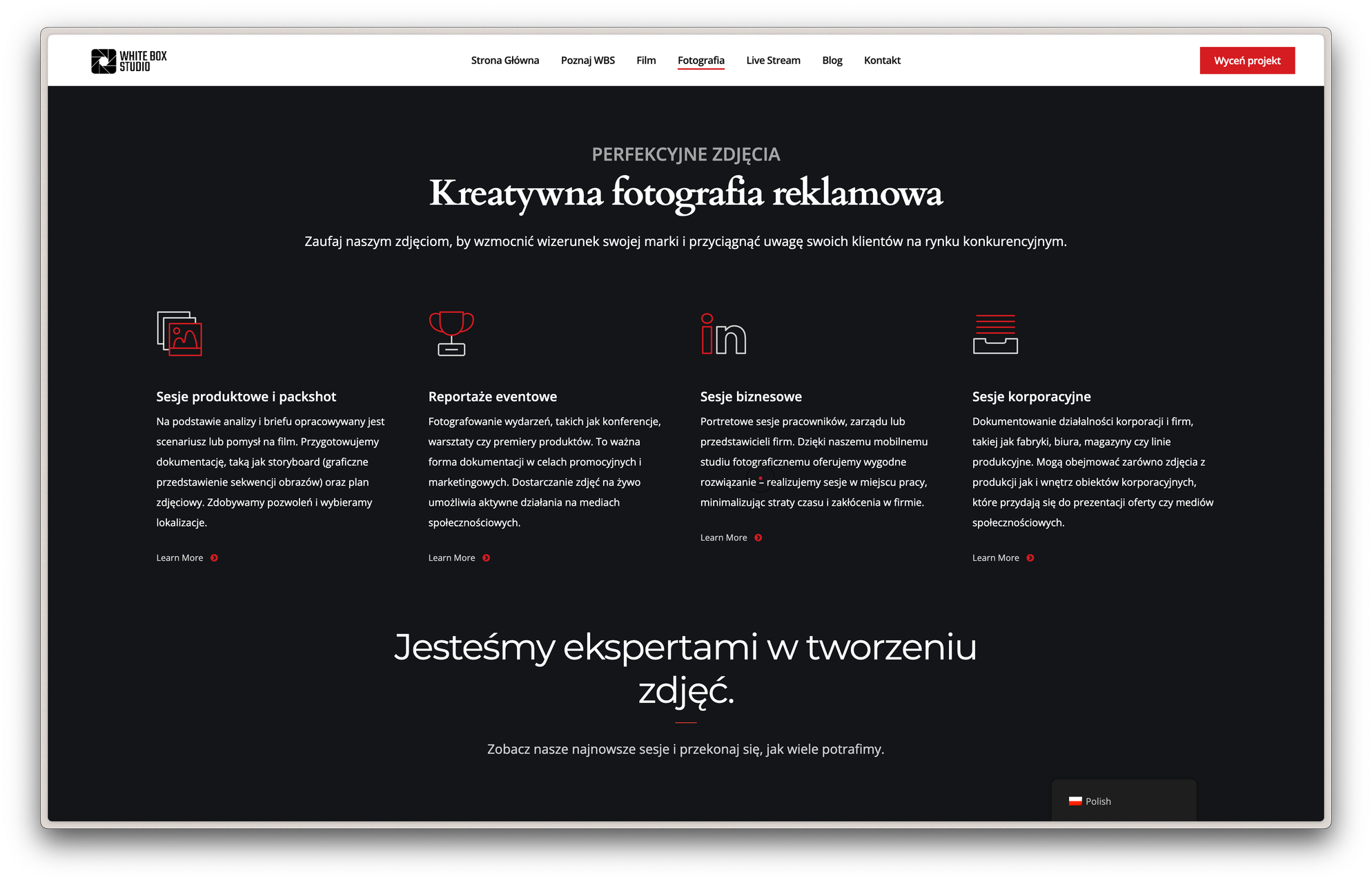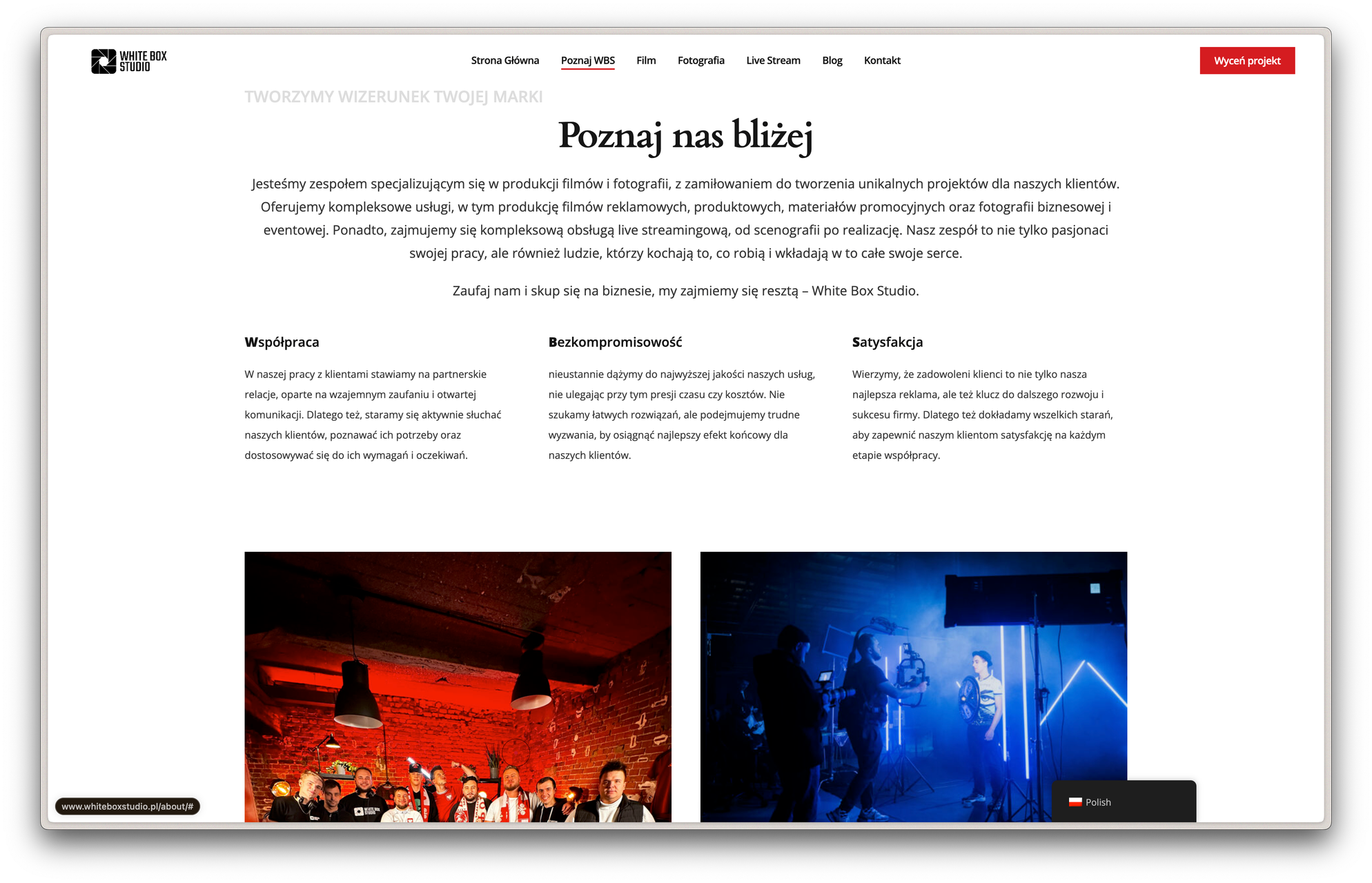 WhiteBoxStudio zleciło nam stworzenie kompleksowej strony marketingowej, która nie tylko zaprezentuje ich portfolio, ale także skupi się na atrakcyjnym designie oraz przyjemnym doświadczeniu użytkownika. Celem było stworzenie miejsca, które zgromadzi wszystkie ich projekty i zaoferuje klientom przyjazne środowisko przeglądania.